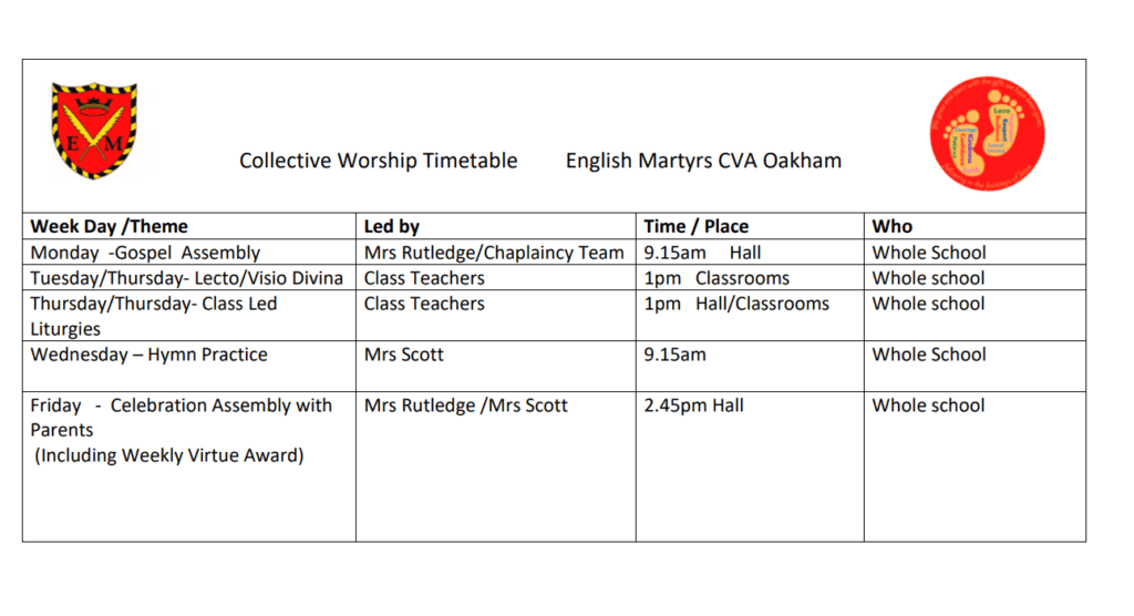 Prayers are said throughout the day by both children and staff across the whole school. We encourage the children to know the following prayers from memory: